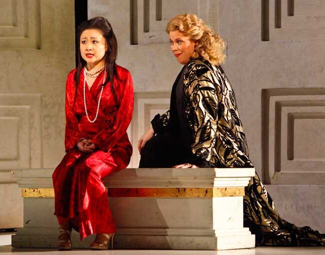 "The coloratura soprano Kathleen Kim delivered the skittish, shrieking vocal lines of the malevolent Madame Mao with maniacal intensity."